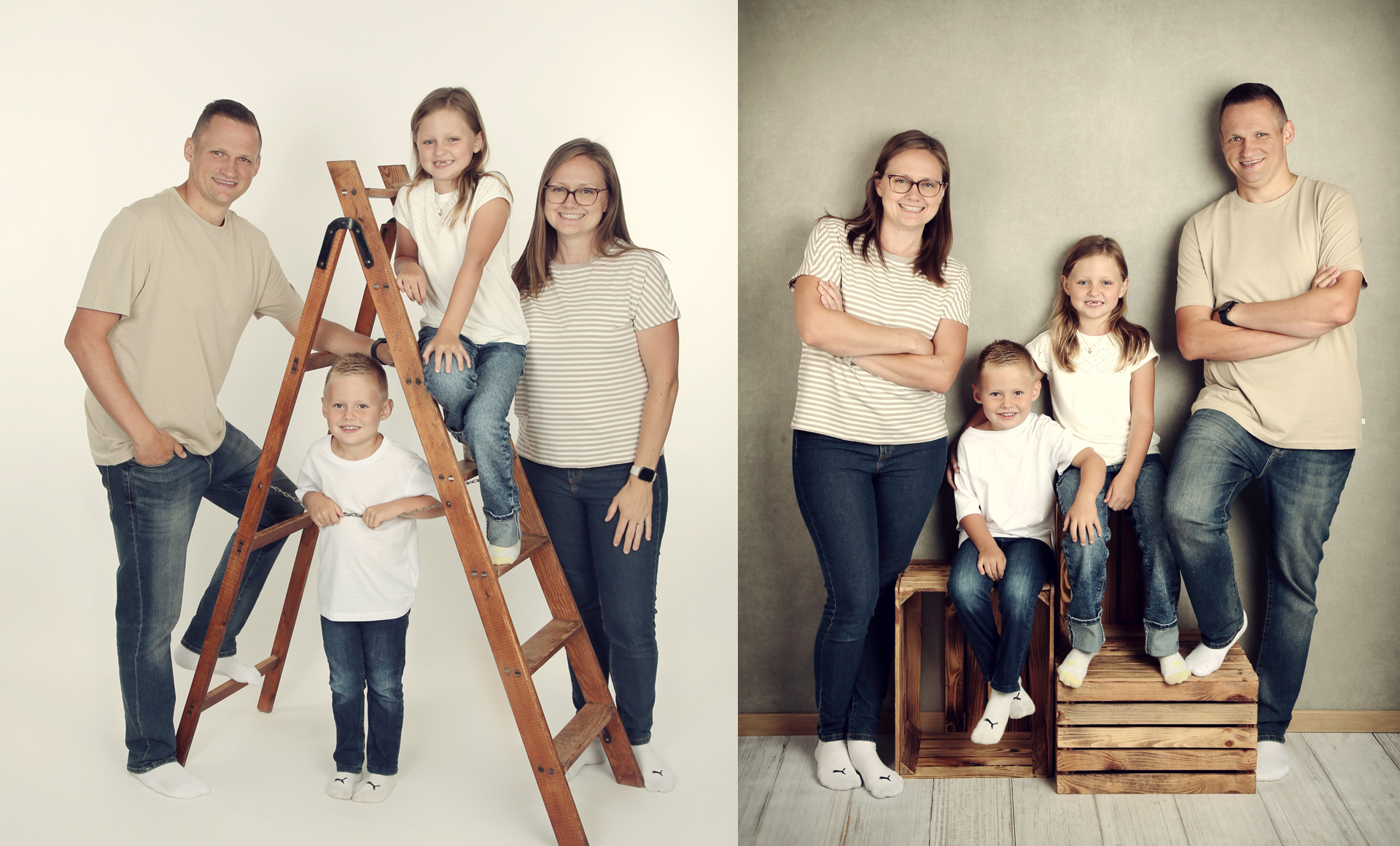 Das entscheidet ihr! Im Studio haben wir volle Kontrolle über Licht und Hintergrund – perfekt, wenn ihr es gemütlich und fokussiert mögt. Draußen in der Natur ist die Kulisse einfach unschlagbar: frische Luft, natürliches Licht und die Freiheit, einfach herumzulaufen und zu spielen, ideal für zusätzliche spontane Schnappschüsse.